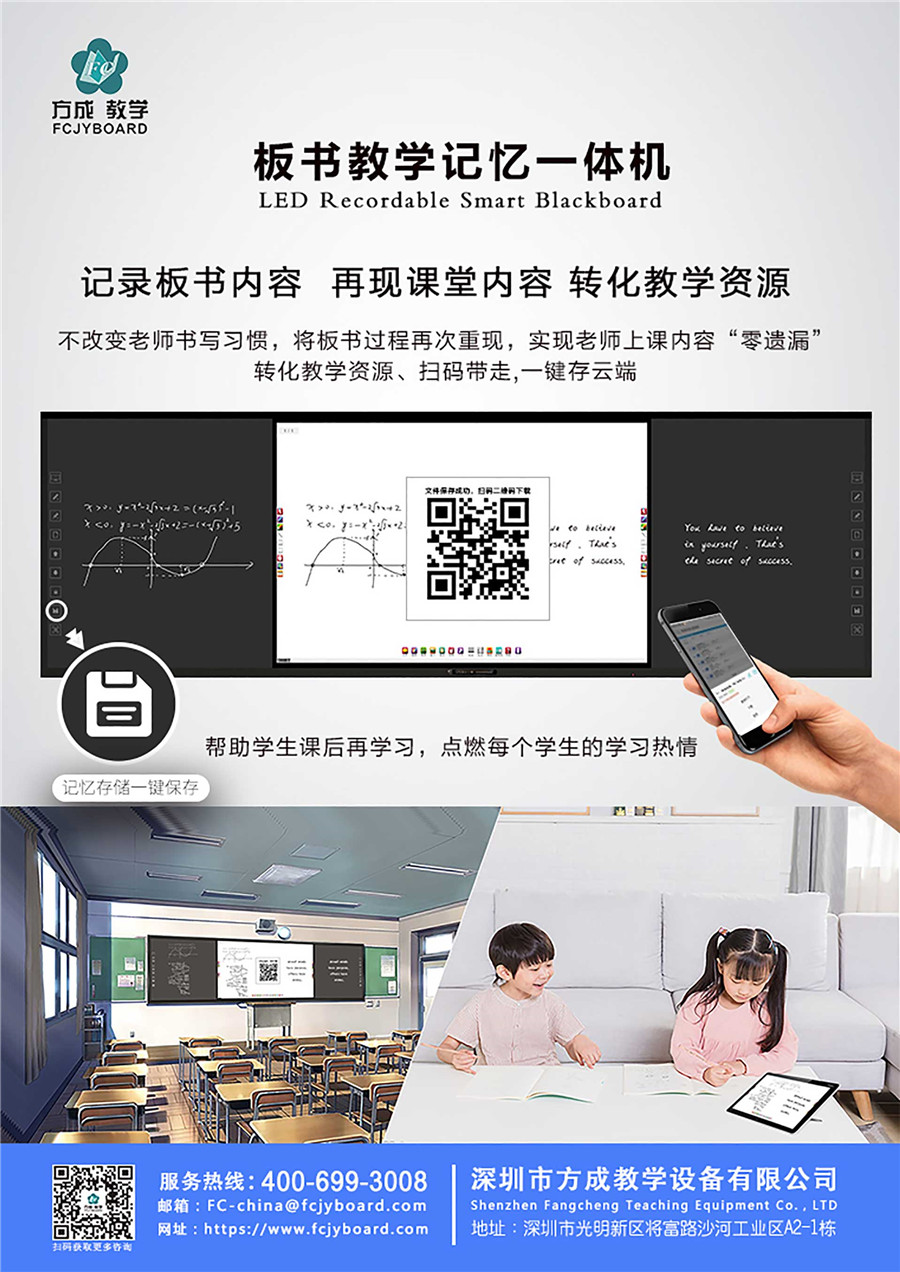 即時書寫,即時記憶:方成教學板書記憶一體機呈現超大屏幕,即是展示空間,亦是書寫空間。掃碼再現,輕松復習:45分鐘課堂全程記錄,板書內容完整保存。老師不再擔心學生筆記跟不上,學生不再擔心漏記、錯記,甚至缺勤也不怕,學生課后輕松復習。
