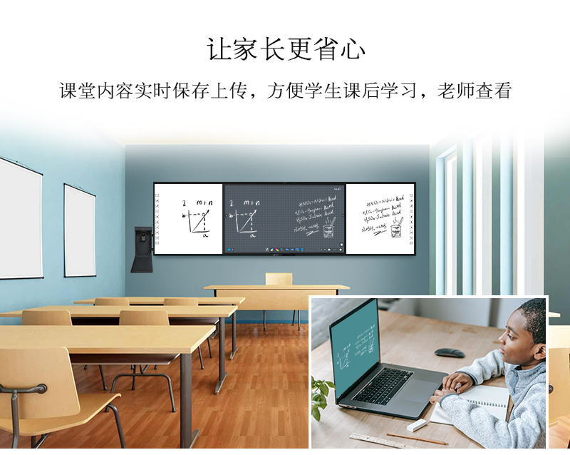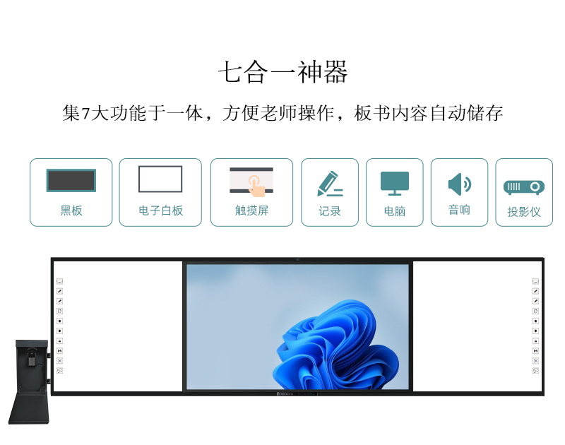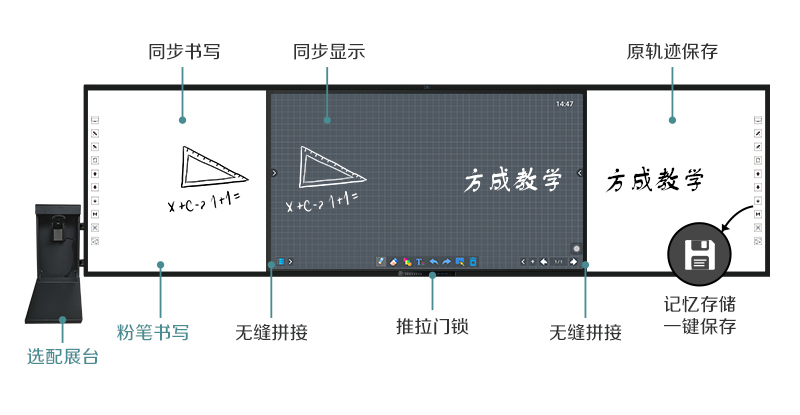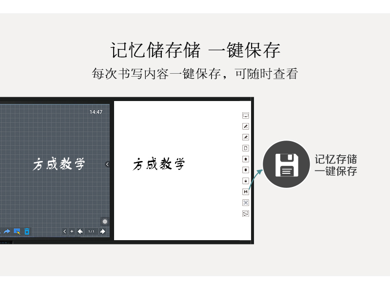 互聯黑板-記錄板書內容、再現課堂過程、轉化教學資源,板書教學記憶一體機集六大產品于一機,在不改變老師板書習慣的前提下,實現傳統教學與多媒體設備的智慧融合,設定了有板書記憶、板書同步顯示、板書自動分享等多樣化功能,每一個功能的實現都賦予了自己的使命。