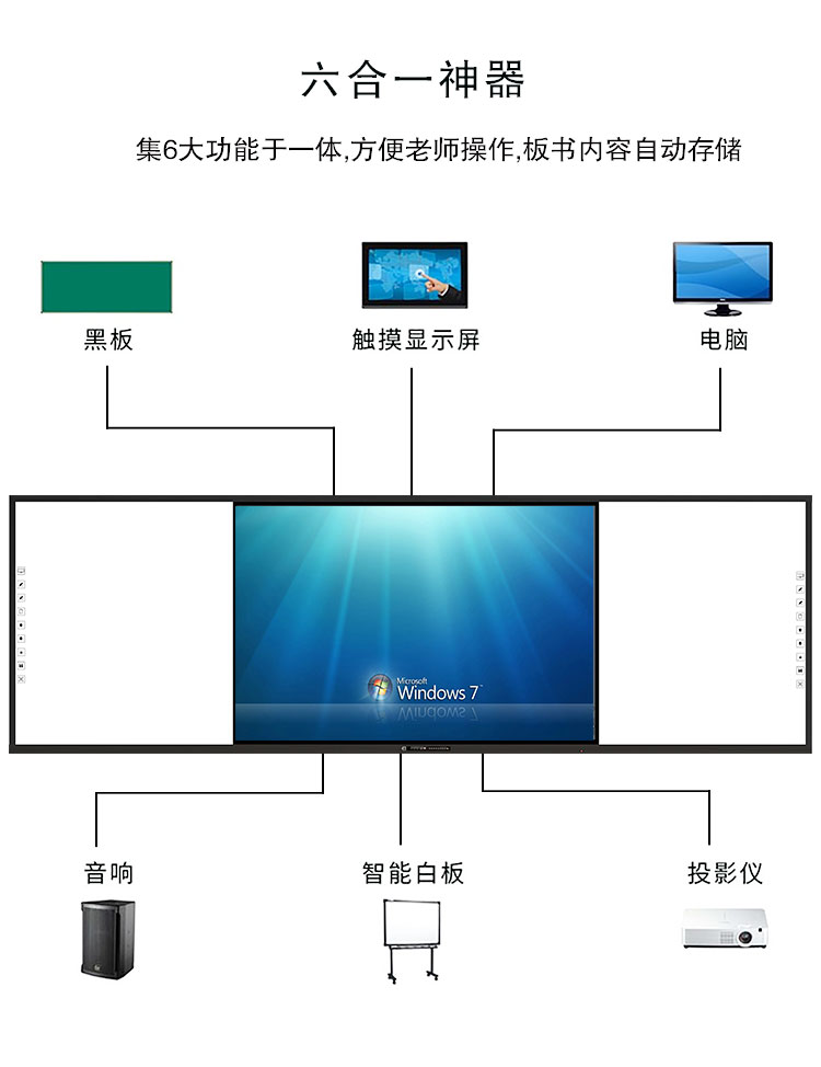 板書教學記憶一體機-記錄板書內容、再現課堂過程、轉化教學資源,板書教學記憶一體機集六大產品于一機,在不改變老師板書習慣的前提下,實現傳統(tǒng)教學與多媒體設備的智慧融合,設定了有板書記憶、板書同步顯示、板書自動分享等多樣化功能,每一個功能的實現都賦予了自己的使命。
