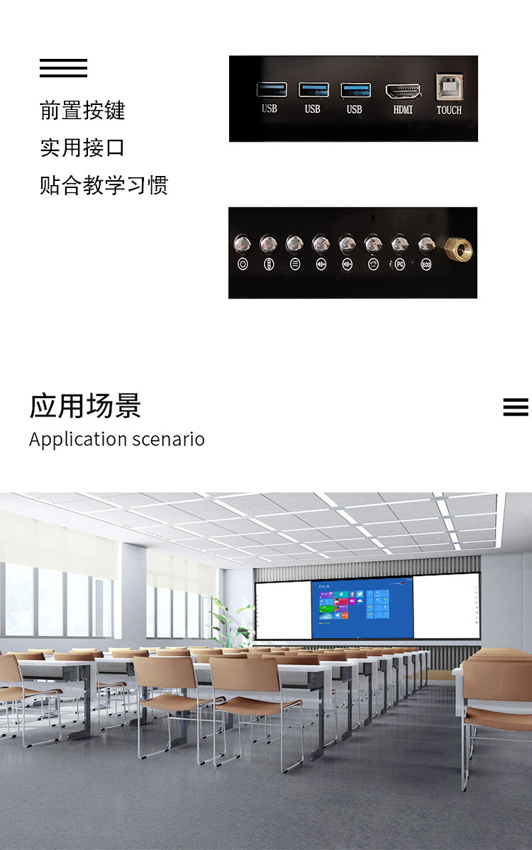 機身保護——獨特的推拉門鎖設計,保護前置按鍵及接口,還能收納白板筆和教鞭;