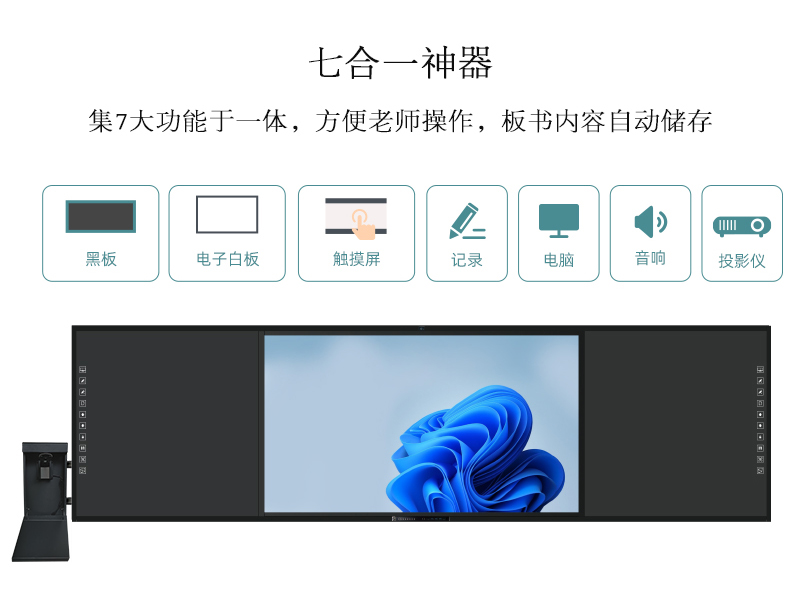 板書教學記憶一體機-記錄板書內容、再現課堂過程、轉化教學資源,板書教學記憶一體機集六大產品于一機,在不改變老師板書習慣的前提下,實現傳統教學與多媒體設備的智慧融合,設定了有板書記憶、板書同步顯示、板書自動分享等多樣化功能,每一個功能的實現都賦予了自己的使命。