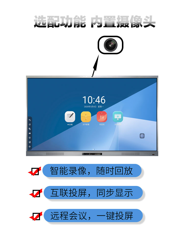 5、時尚精簡外觀,會議一鍵啟動(這條特點(diǎn)針對于S款不帶推拉門的會議平板一體機(jī),主要應(yīng)用在會議場所用)